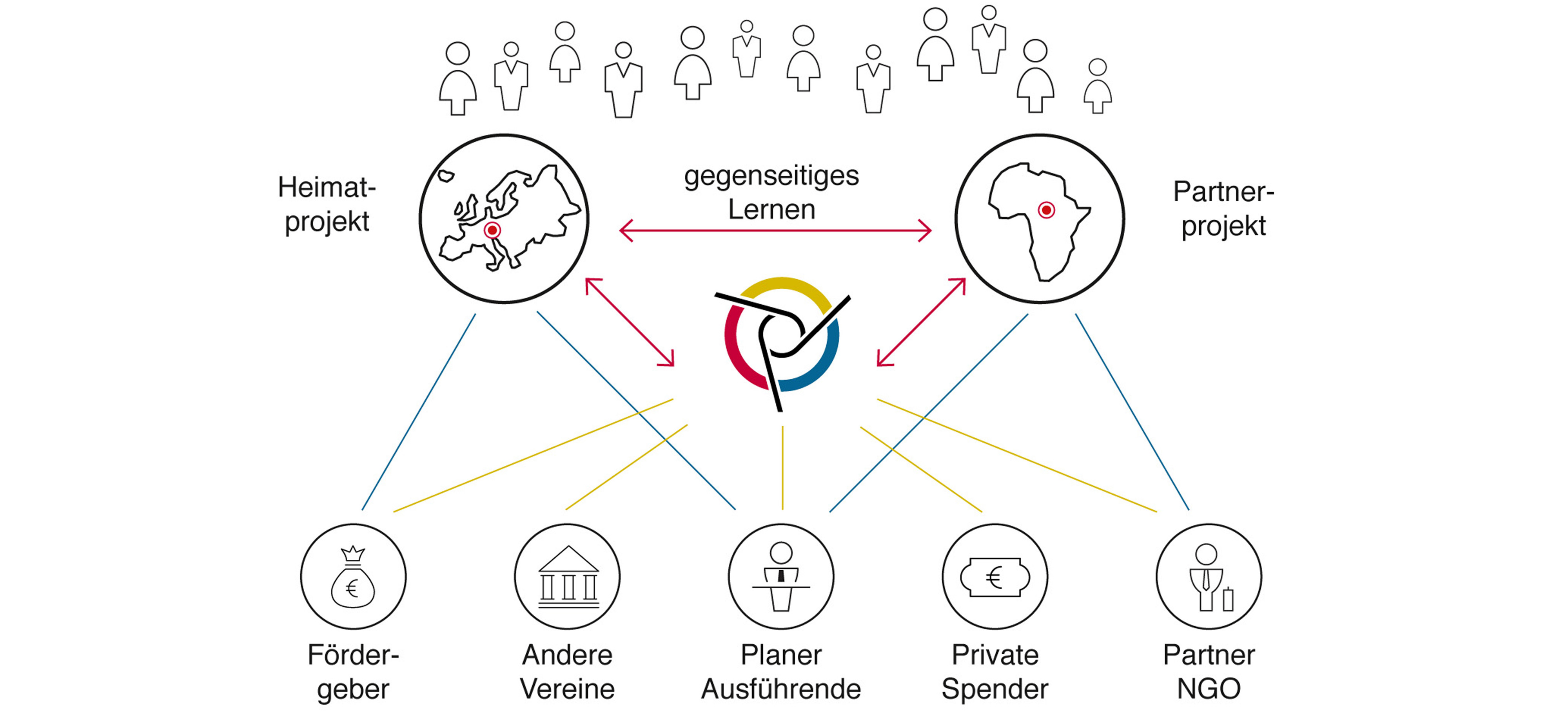 Von zentraler Bedeutung ist die Zusammenarbeit mit Partner NGOs. Diese übernehmen wesentliche Aufgaben hinsichtlich Planung, Organisation und Umsetzung der Partnerprojekte. Sie sind zumeist der künftige Träger und Besitzer der Partnerprojkete und damit für den sozialen Zweck sowie den Betrieb, die Wartung und die Instandhaltung der baulichen Anlagen verantwortlich.